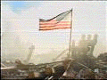raised the flag on the smoking ruins, putting on